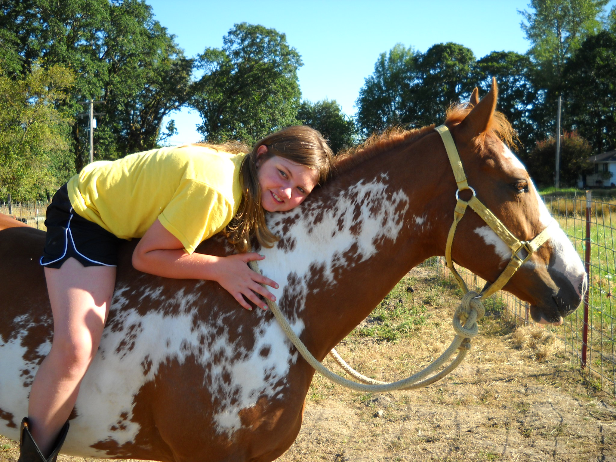 Thursday found me hooking up the stock trailer to take our dear Bella for a riding lesson. She’s been a real pill and has decided that she doesn’t want to move when the girls want her to. After thirty minutes of brushing dirt off the horse that thinks mud is from rolling in, we took off. I took a wrong turn and spent way too many minutes trying to back the trailer into a tiny place so I could turn around. We made it to the stables though and the lesson was fabulous. Bella even exerted herself (a little).